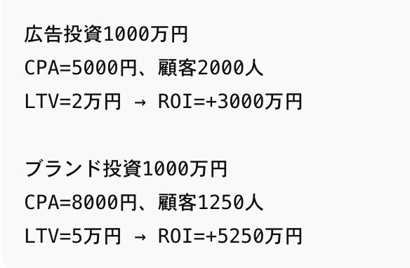 ブランドは「イメージ戦略」ではなく、顧客獲得コストを下げる経済的資産 です。